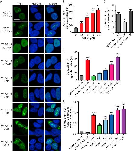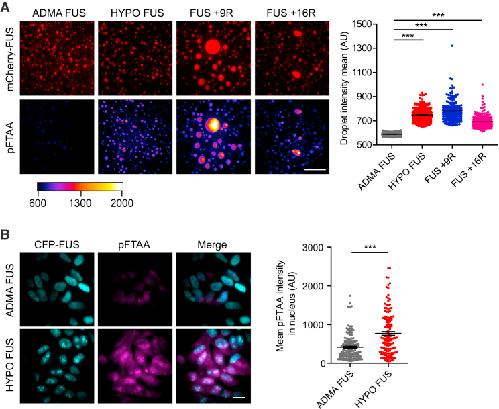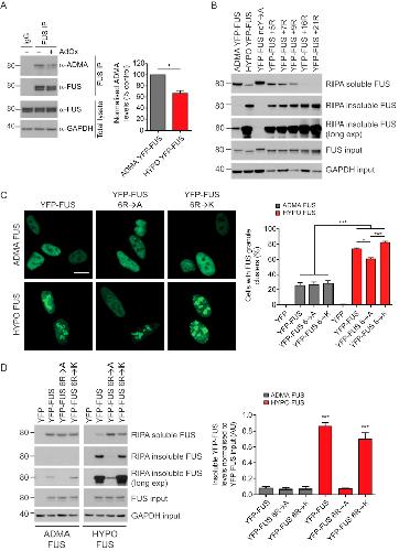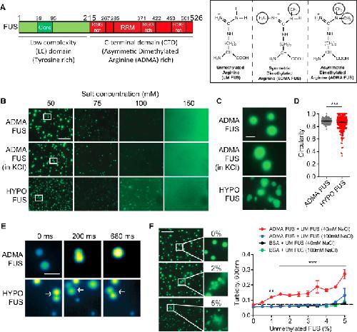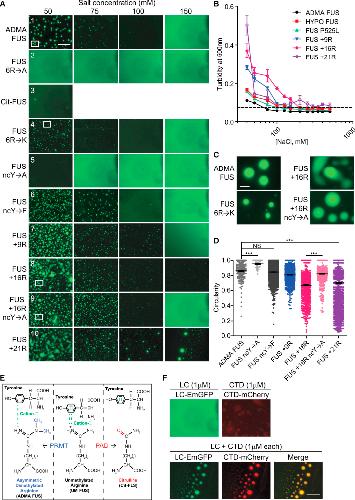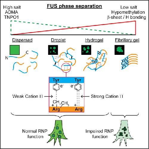 FUS Phase Separation Is Modulated by a Molecular Chaperone and Methylation of Arginine Cation-π Interactions., Qamar S, Wang G, Randle SJ, Ruggeri FS, Varela JA, Lin JQ, Phillips EC, Miyashita A, Williams D, Ströhl F, Meadows W, Ferry R, Dardov VJ, Tartaglia GG, Farrer LA, Kaminski Schierle GS, Kaminski CF, Holt CE, Fraser PE, Schmitt-Ulms G, Klenerman D, Knowles T, Vendruscolo M, St George-Hyslop P., Cell. April 19, 2018; 173 (3): 720-734.e15. |