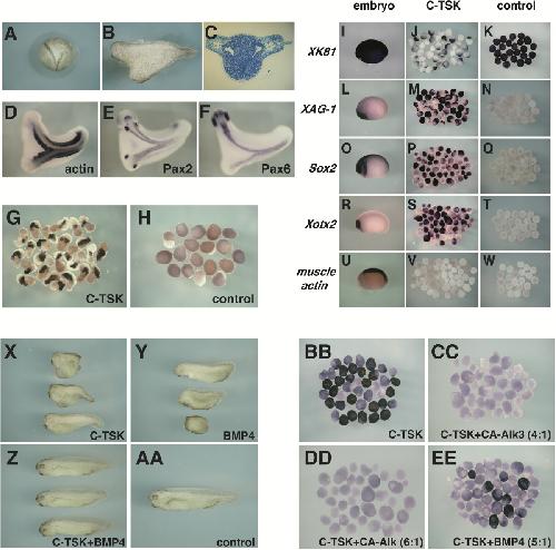 Tsukushi functions as an organizer inducer by inhibition of BMP activity in cooperation with chordin., Ohta K, Lupo G, Kuriyama S, Keynes R, Holt CE, Harris WA, Tanaka H, Ohnuma SI., Dev Cell. September 1, 2004; 7 (3): 347-358. |