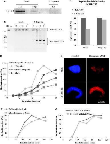 Topoisomerase II can unlink replicating DNA by precatenane removal. , Lucas I, Germe T, Chevrier-Miller M, Hyrien O ., EMBO J. November 15, 2001; 20 (22): 6509-19.