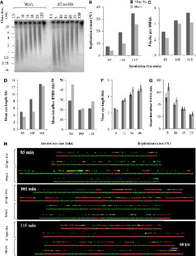 Replication fork density increases during DNA synthesis in X. laevis egg extracts. , Herrick J, Stanislawski P, Hyrien O , Bensimon A., J Mol Biol. July 28, 2000; 300 (5): 1133-42.