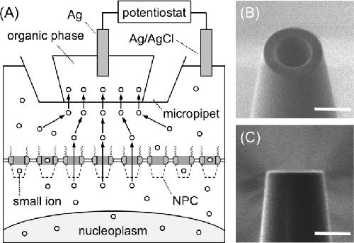 Ion permeability of the nuclear pore complex and ion-induced macromolecular permeation as studied by scanning electrochemical and fluorescence microscopy. , Kim J , Izadyar A, Shen M, Ishimatsu R, Amemiya S., Anal Chem. February 18, 2014; 86 (4): 2090-8.