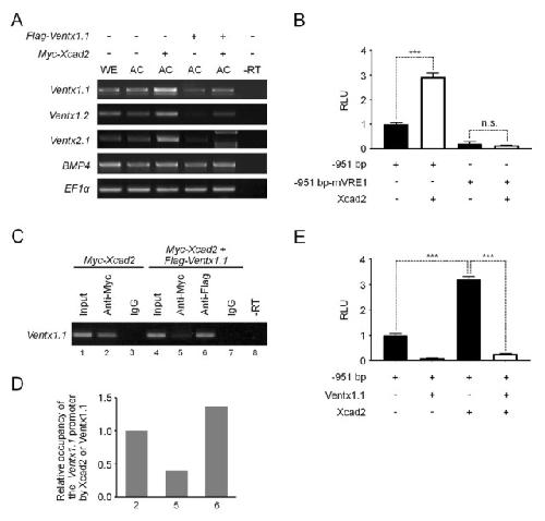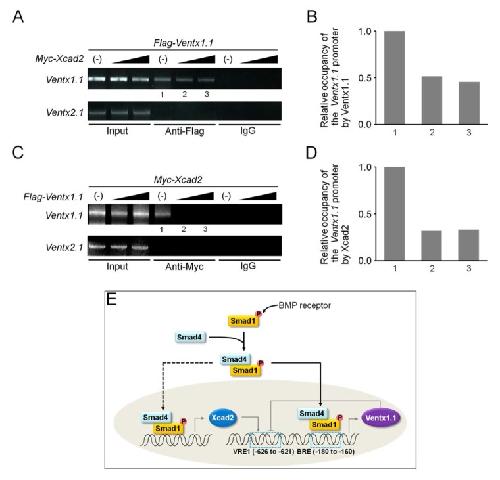 Ventx1.1 competes with a transcriptional activator Xcad2 to regulate negatively its own expression. , Kumar S , Umair Z, Kumar V , Lee U, Choi SC , Kim J ., BMB Rep. June 1, 2019; 52 (6): 403-408.