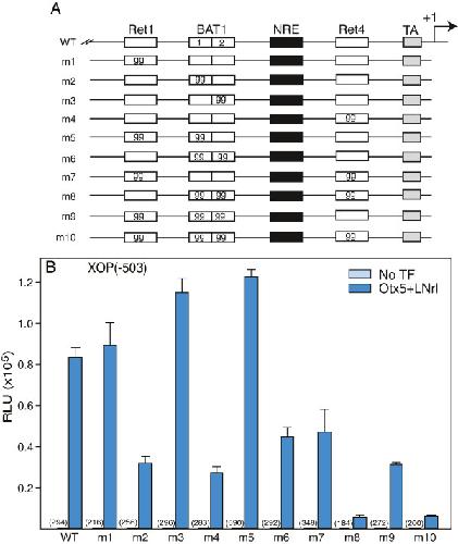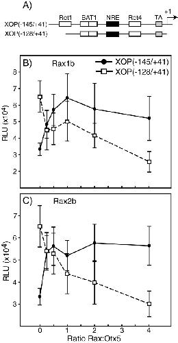 Conserved cis-elements in the Xenopus red opsin promoter necessary for cone-specific expression., Babu S, McIlvain V, Whitaker SL, Knox BE., FEBS Lett. February 20, 2006; 580 (5): 1479-84.