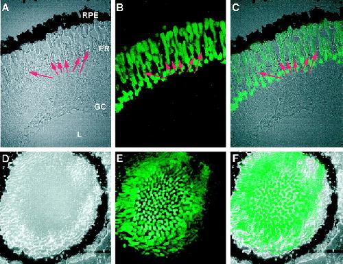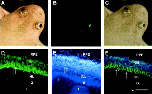 Fluorescent photoreceptors of transgenic Xenopus laevis imaged in vivo by two microscopy techniques., Moritz OL, Tam BM, Knox BE, Papermaster DS., Invest Ophthalmol Vis Sci. December 1, 1999; 40 (13): 3276-80.