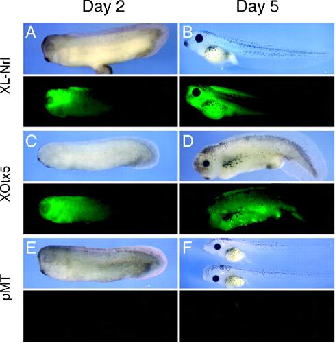 Transgene expression in Xenopus rods., Knox BE, Schlueter C, Sanger BM, Green CB, Besharse JC., FEBS Lett. February 20, 1998; 423 (2): 117-21.