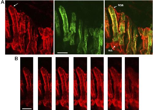 The outer segment serves as a default destination for the trafficking of membrane proteins in photoreceptors., Baker SA, Haeri M, Yoo P, Gospe SM, Skiba NP, Knox BE, Arshavsky VY., J Cell Biol. November 3, 2008; 183 (3): 485-98.
