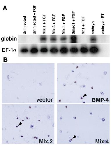 Cloning of Mix-related homeodomain proteins using fast retrieval of gel shift activities, (FROGS), a technique for the isolation of DNA-binding proteins. , Mead PE , Zhou Y, Lustig KD , Huber TL, Kirschner MW , Zon LI ., Proc Natl Acad Sci U S A. September 15, 1998; 95 (19): 11251-6.