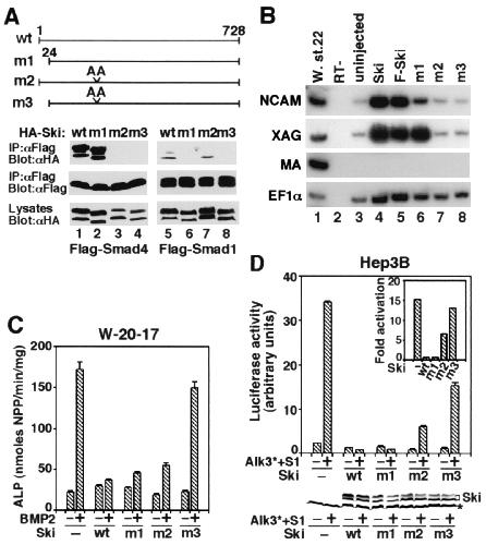 Ski represses bone morphogenic protein signaling in Xenopus and mammalian cells., Wang W, Mariani FV, Harland RM, Luo K., Proc Natl Acad Sci U S A. December 19, 2000; 97 (26): 14394-9.