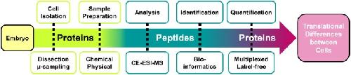 Label-free Quantification of Proteins in Single Embryonic Cells with Neural Fate in the Cleavage-Stage Frog (Xenopus laevis) Embryo using Capillary Electrophoresis Electrospray Ionization High-Resolution Mass Spectrometry (CE-ESI-HRMS)., Lombard-Banek C, Reddy S, Moody SA, Nemes P., Mol Cell Proteomics. August 1, 2016; 15 (8): 2756-68.