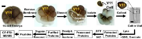 Single-Cell Mass Spectrometry for Discovery Proteomics: Quantifying Translational Cell Heterogeneity in the 16-Cell Frog (Xenopus) Embryo., Lombard-Banek C, Moody SA, Nemes P., Angew Chem Int Ed Engl. February 12, 2016; 55 (7): 2454-8.