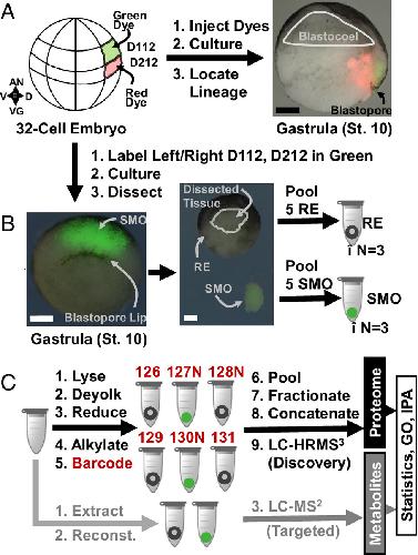 Single-cell mass spectrometry with multi-solvent extraction identifies metabolic differences between left and right blastomeres in the 8-cell frog (Xenopus) embryo., Onjiko RM, Morris SE, Moody SA, Nemes P., Analyst. June 21, 2016; 141 (12): 3648-56.