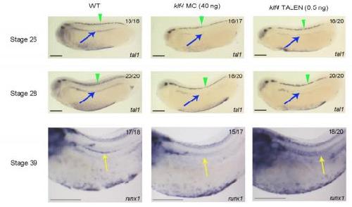 VEGFA-dependent and -independent pathways synergise to drive Scl expression and initiate programming of the blood stem cell lineage in Xenopus. , Ciau-Uitz A , Pinheiro P , Kirmizitas A, Zuo J, Patient R ., Development. June 1, 2013; 140 (12): 2632-42.
