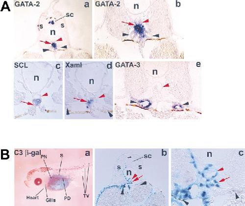 The SCL gene specifies haemangioblast development from early mesoderm. , Gering M, Rodaway AR, Göttgens B, Patient RK , Green AR., EMBO J. July 15, 1998; 17 (14): 4029-45.