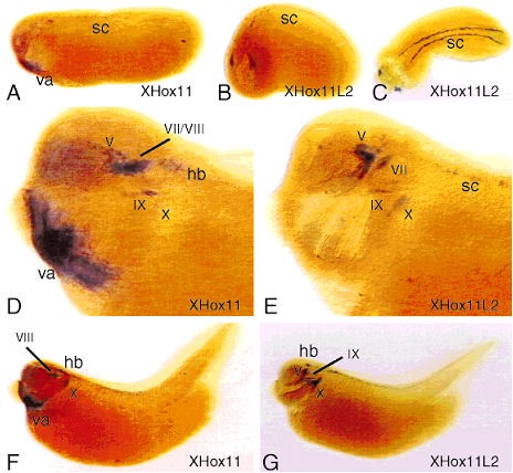 Hox11-family genes XHox11 and XHox11L2 in xenopus: XHox11L2 expression is restricted to a subset of the primary sensory neurons. , Patterson KD , Krieg PA ., Dev Dyn. January 1, 1999; 214 (1): 34-43.