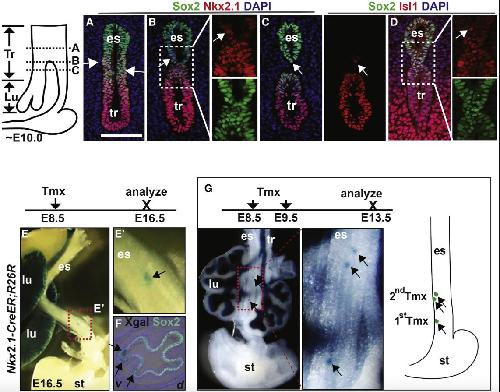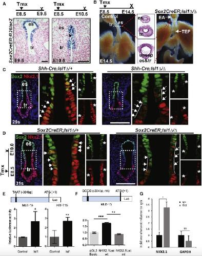 Isl1 Regulation of Nkx2.1 in the Early Foregut Epithelium Is Required for Trachea-Esophageal Separation and Lung Lobation. , Kim E , Jiang M, Huang H, Zhang Y , Tjota N, Gao X, Robert J , Gilmore N, Gan L, Que J., Dev Cell. December 16, 2019; 51 (6): 675-683.e4.