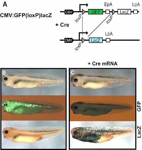 FLP and Cre recombinase function in Xenopus embryos. , Werdien D, Peiler G, Ryffel GU ., Nucleic Acids Res. June 1, 2001; 29 (11): E53-3.