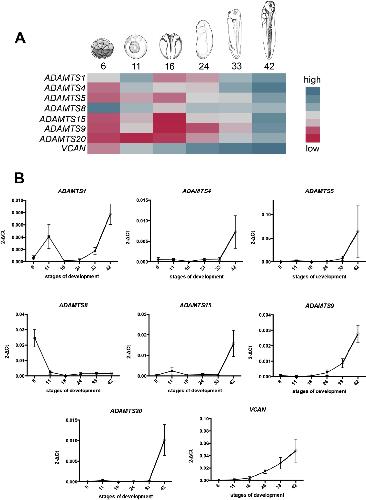 ADAMTS9, a member of the ADAMTS family, in Xenopus development., Desanlis I, Felstead HL, Edwards DR, Wheeler GN., Gene Expr Patterns. September 1, 2018; 29 72-81. |