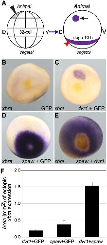 Dvr1 transfers left-right asymmetric signals from Kupffer's vesicle to lateral plate mesoderm in zebrafish. , Peterson AG, Wang X , Yost HJ ., Dev Biol. October 1, 2013; 382 (1): 198-208.