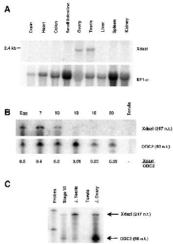 A critical role for Xdazl, a germ plasm-localized RNA, in the differentiation of primordial germ cells in Xenopus. , Houston DW , King ML ., Development. February 1, 2000; 127 (3): 447-56.
