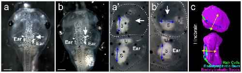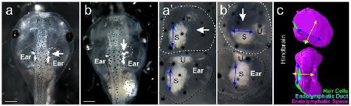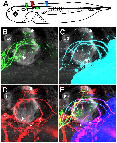 Sensory afferent segregation in three-eared frogs resemble the dominance columns observed in three-eyed frogs. , Elliott KL, Houston DW , Fritzsch B ., Sci Rep. February 9, 2015; 5 8338.