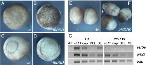 Maternal Interferon Regulatory Factor 6 is required for the differentiation of primary superficial epithelia in Danio and Xenopus embryos. , Sabel JL, d'Alençon C, O'Brien EK, Van Otterloo E, Lutz K, Cuykendall TN , Schutte BC, Houston DW , Cornell RA., Dev Biol. January 1, 2009; 325 (1): 249-62.