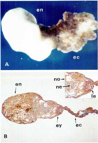 Partially purified factor from embryonic chick brain can provoke neuralization of Rana temporaria and Triturus alpestris but not Xenopus laevis early gastrula ectoderm. , Mikhailov AT, Gorgolyuk NA, Tacke L, Mykhoyan MM, Grunz H ., Int J Dev Biol. April 1, 1995; 39 (2): 317-25.