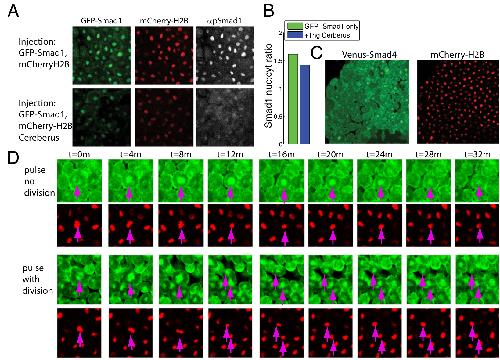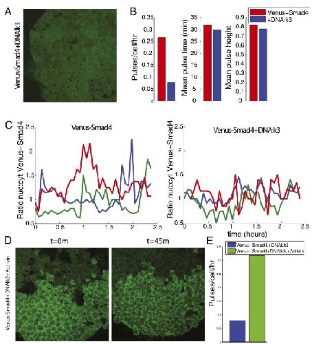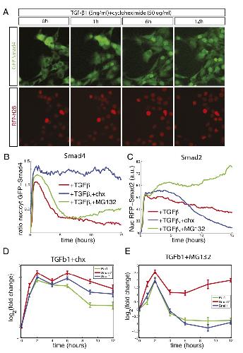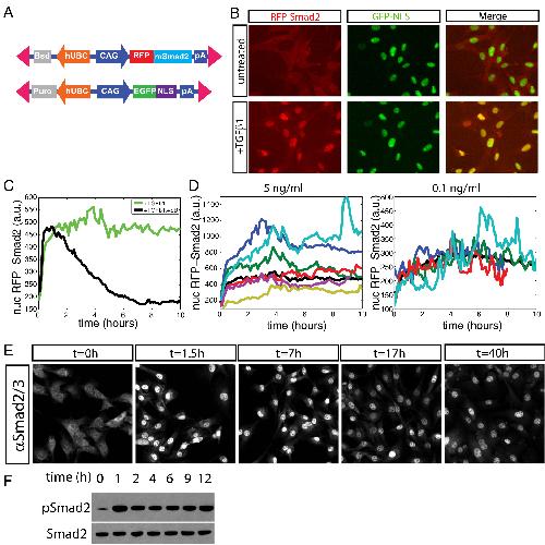 Dynamics of TGF-β signaling reveal adaptive and pulsatile behaviors reflected in the nuclear localization of transcription factor Smad4. , Warmflash A, Zhang Q, Sorre B, Vonica A, Siggia ED, Brivanlou AH ., Proc Natl Acad Sci U S A. June 10, 2012; 109 (28): E1947-56.