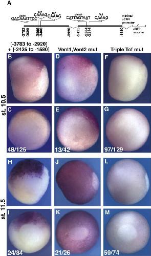 Tcf- and Vent-binding sites regulate neural-specific geminin expression in the gastrula embryo. , Taylor JJ, Wang T, Kroll KL ., Dev Biol. January 15, 2006; 289 (2): 494-506.