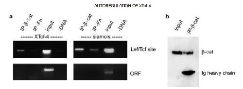 Autoregulation of XTcf-4 depends on a Lef/Tcf site on the XTcf-4 promoter. , Koenig SF, Lattanzio R, Mansperger K, Rupp RA , Wedlich D , Gradl D ., Genesis. February 1, 2008; 46 (2): 81-6.