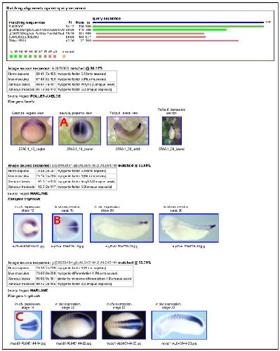 Evading the annotation bottleneck: using sequence similarity to search non-sequence gene data. , Gilchrist MJ , Christensen MB, Harland R , Pollet N , Smith JC , Ueno N , Papalopulu N ., BMC Bioinformatics. October 17, 2008; 9 442.