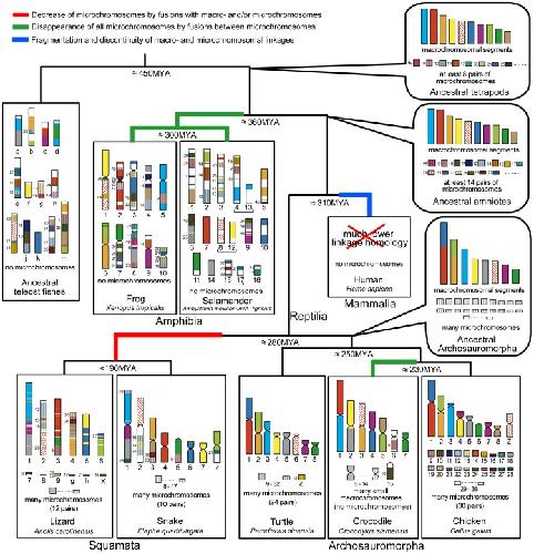 Inference of the protokaryotypes of amniotes and tetrapods and the evolutionary processes of microchromosomes from comparative gene mapping. , Uno Y , Nishida C, Tarui H, Ishishita S, Takagi C, Nishimura O, Ishijima J, Ota H, Kosaka A, Matsubara K, Murakami Y, Kuratani S, Ueno N , Agata K, Matsuda Y., PLoS One. January 1, 2012; 7 (12): e53027.