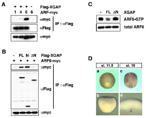 XGAP, an ArfGAP, is required for polarized localization of PAR proteins and cell polarity in Xenopus gastrulation. , Hyodo-Miura J, Yamamoto TS , Hyodo AC, Iemura S, Kusakabe M , Nishida E , Natsume T, Ueno N ., Dev Cell. July 1, 2006; 11 (1): 69-79.
