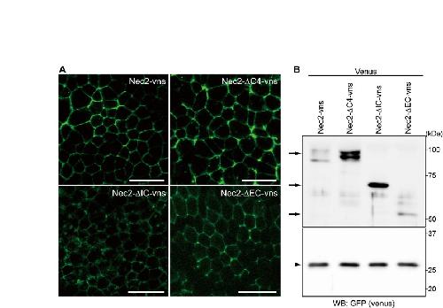 Nectin-2 and N-cadherin interact through extracellular domains and induce apical accumulation of F-actin in apical constriction of Xenopus neural tube morphogenesis. , Morita H, Nandadasa S, Yamamoto TS , Terasaka-Iioka C, Wylie C , Ueno N ., Development. April 1, 2010; 137 (8): 1315-25.