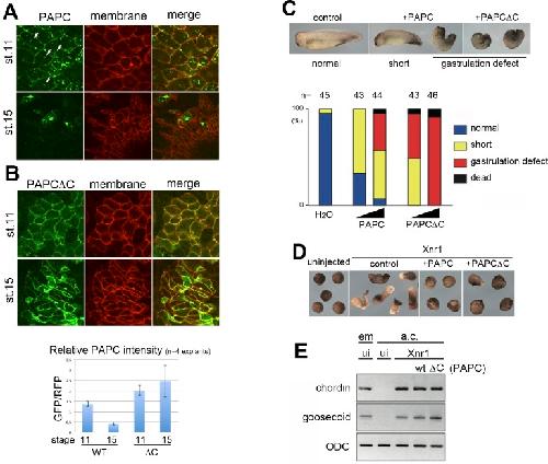 Phosphorylation-dependent ubiquitination of paraxial protocadherin ( PAPC) controls gastrulation cell movements. , Kai M, Ueno N , Kinoshita N., PLoS One. January 12, 2015; 10 (1): e0115111.