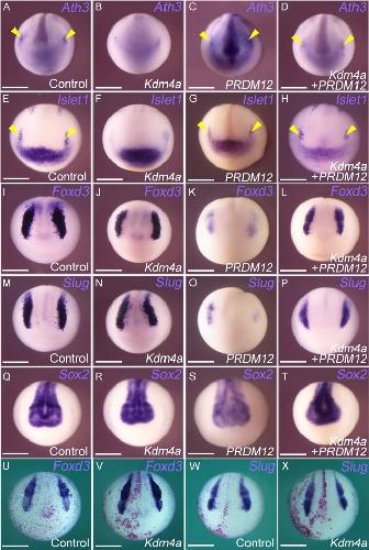 The requirement of histone modification by PRDM12 and Kdm4a for the development of pre-placodal ectoderm and neural crest in Xenopus. , Matsukawa S, Miwata K, Asashima M , Michiue T ., Dev Biol. March 1, 2015; 399 (1): 164-176.