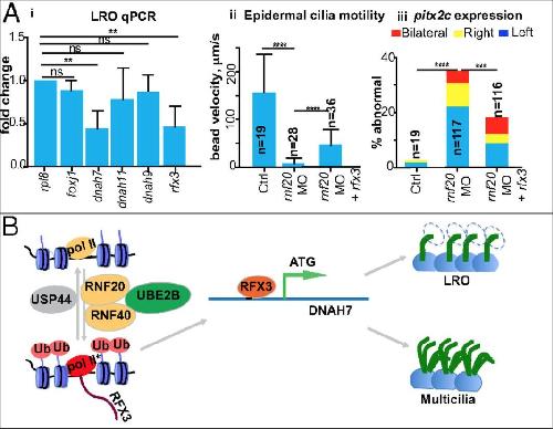Histone H2B monoubiquitination regulates heart development via epigenetic control of cilia motility., Robson A, Makova SZ, Barish S, Zaidi S, Mehta S, Drozd J, Jin SC, Gelb BD, Seidman CE, Chung WK, Lifton RP, Khokha MK, Brueckner M., Proc Natl Acad Sci U S A. July 9, 2019; 116 (28): 14049-14054. |