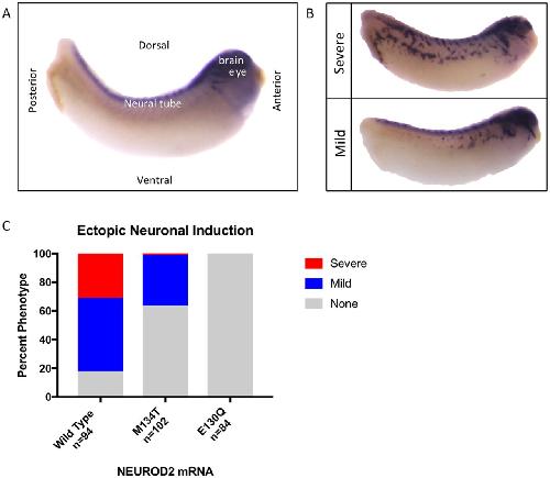 De novo pathogenic variants in neuronal differentiation factor 2 (NEUROD2) cause a form of early infantile epileptic encephalopathy., Sega AG, Mis EK, Lindstrom K, Mercimek-Andrews S, Ji W, Cho MT, Juusola J, Konstantino M, Jeffries L, Khokha MK, Lakhani SA., J Med Genet. February 1, 2019; 56 (2): 113-122. |