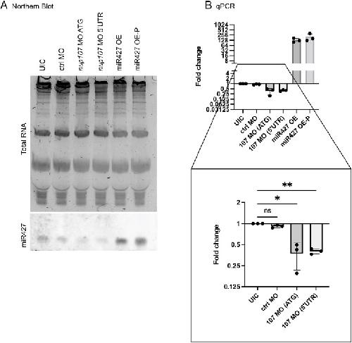 Nup107 contributes to the maternal-to-zygotic transition by preventing the premature nuclear export of pri-miR427., Kostiuk V, Kabir R, Levangie K, Empke S, Morgan K, Owens NDL, Lusk CP, Khokha MK., Development. February 15, 2025; 152 (2): |