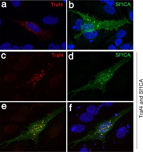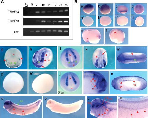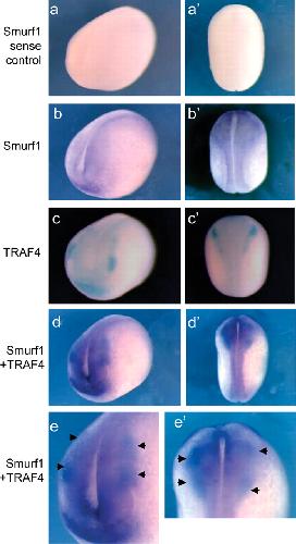 Tumor necrosis factor-receptor-associated factor-4 is a positive regulator of transforming growth factor-beta signaling that affects neural crest formation. , Kalkan T, Iwasaki Y , Park CY, Thomsen GH ., Mol Biol Cell. July 1, 2009; 20 (14): 3436-50.