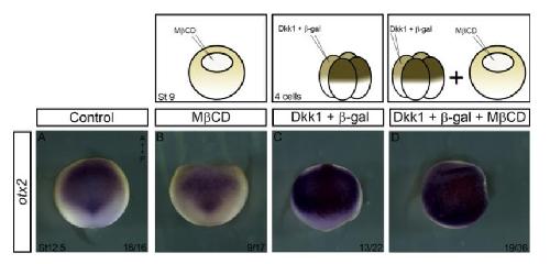 Cholesterol-rich membrane microdomains modulate Wnt/β-catenin morphogen gradient during Xenopus development., Reis AH, Moreno MM, Maia LA, Oliveira FP, Santos AS, Abreu JG., Mech Dev. November 1, 2016; 142 30-39. |
