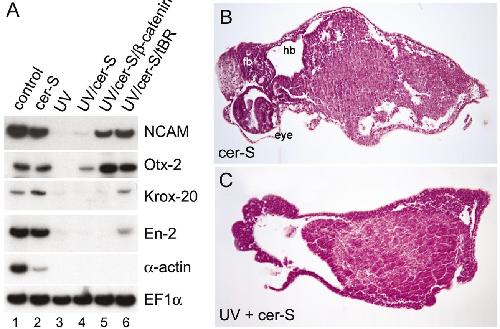 Neural induction in the absence of mesoderm: beta-catenin-dependent expression of secreted BMP antagonists at the blastula stage in Xenopus. , Wessely O , Agius E , Oelgeschläger M , Pera EM , De Robertis EM ., Dev Biol. June 1, 2001; 234 (1): 161-73.