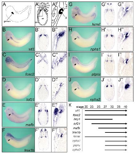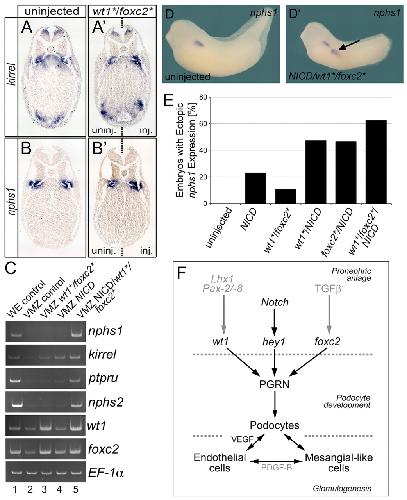 Notch signaling, wt1 and foxc2 are key regulators of the podocyte gene regulatory network in Xenopus. , White JT , Zhang B, Cerqueira DM, Tran U , Wessely O ., Development. June 1, 2010; 137 (11): 1863-73.