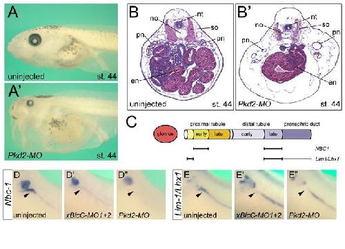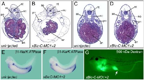 Xenopus Bicaudal-C is required for the differentiation of the amphibian pronephros. , Tran U , Pickney LM, Ozpolat BD , Wessely O ., Dev Biol. July 1, 2007; 307 (1): 152-64.