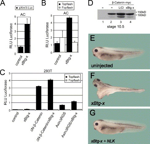 xBtg-x regulates Wnt/beta-Catenin signaling during early Xenopus development. , Wessely O , Kim JI , Tran U , Fuentealba L, De Robertis EM ., Dev Biol. July 1, 2005; 283 (1): 17-28.