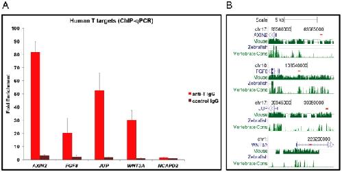 Genomic targets of Brachyury (T) in differentiating mouse embryonic stem cells. , Evans AL, Faial T, Gilchrist MJ , Down T, Vallier L, Pedersen RA, Wardle FC, Smith JC ., PLoS One. January 1, 2012; 7 (3): e33346.
