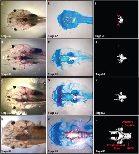 Cranial osteogenesis and suture morphology in Xenopus laevis: a unique model system for studying craniofacial development., Slater BJ, Liu KJ, Kwan MD, Quarto N, Longaker MT., PLoS One. January 1, 2009; 4 (1): e3914. |