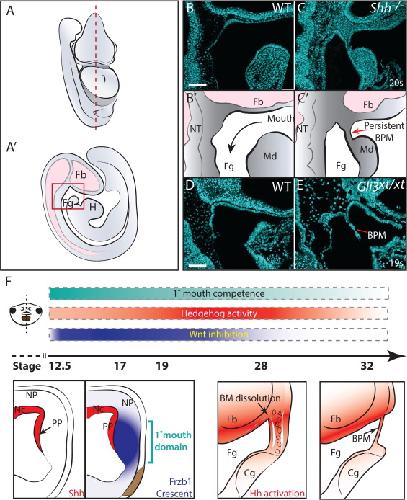 Hedgehog activity controls opening of the primary mouth., Tabler JM, Bolger TG, Wallingford J, Liu KJ., Dev Biol. December 1, 2014; 396 (1): 1-7. |