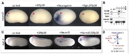 Inhibition of neurogenesis by SRp38, a neuroD-regulated RNA-binding protein., Liu KJ, Harland RM., Development. April 1, 2005; 132 (7): 1511-23. |