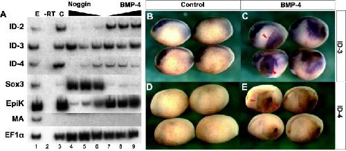 Cloning and characterization of Xenopus Id4 reveals differing roles for Id genes., Liu KJ, Harland RM., Dev Biol. December 15, 2003; 264 (2): 339-51. |