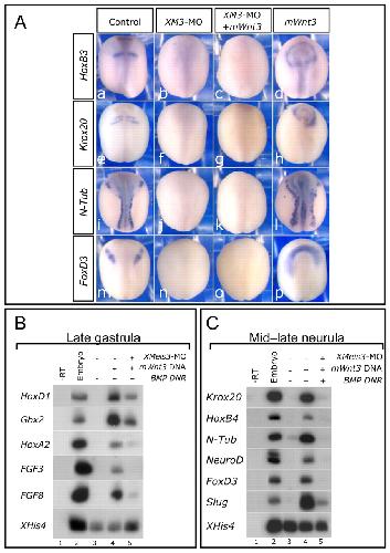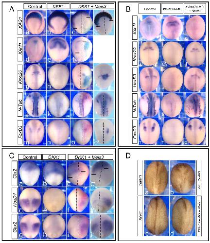 Mesodermal Wnt signaling organizes the neural plate via Meis3., Elkouby YM, Elias S, Casey ES, Blythe SA, Tsabar N, Klein PS, Root H, Liu KJ, Frank D., Development. May 1, 2010; 137 (9): 1531-41. |